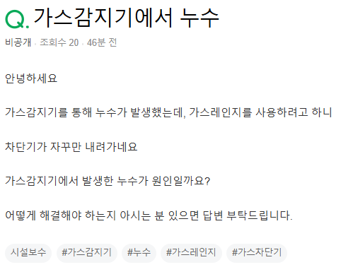 - 이 경우 가스 업체(도시가스사)나 관리사무소에 즉시 연락하여 점검을 받아야 합니다.