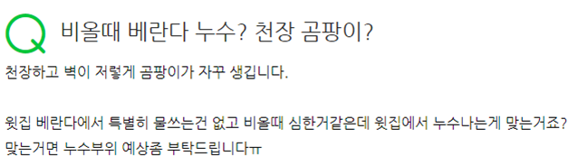 | 아파트 베란다 누수 문의 (2) | 2021.05.17 |