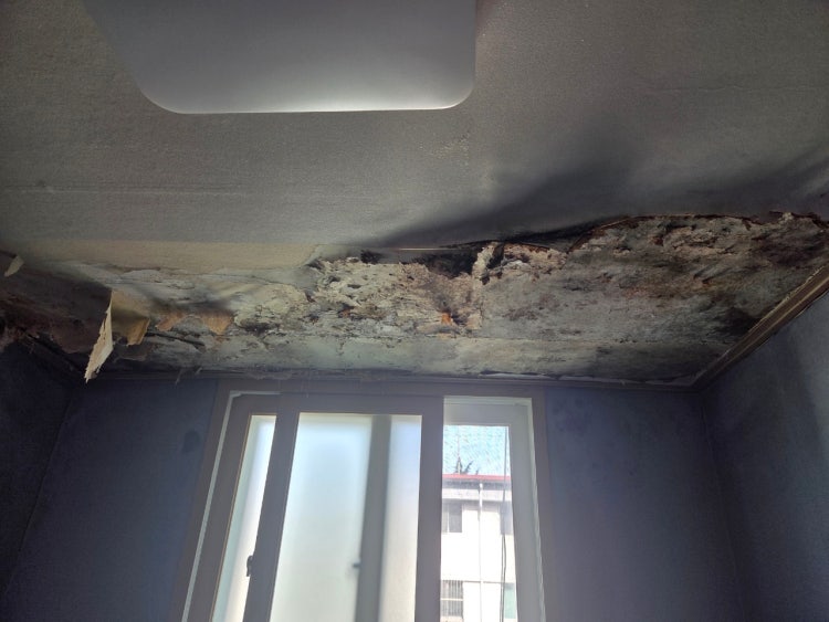 사진을 보니 상황이 꽤 심각해 보이네요… 특히 실내 천장 사진에서 곰팡이와 손상이 심하게 진행된 걸 보니, 장기간 누수가 지속되어 온 것으로 보입니다. 정말 속상하셨을 것 같아요.