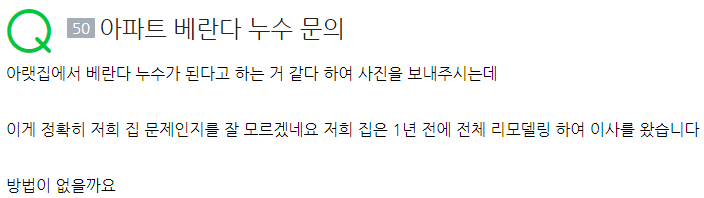 | 아파트 최고층 누수) 비만오면 베란다 바닥에 물이 고여요 (0) | 2021.05.21 |