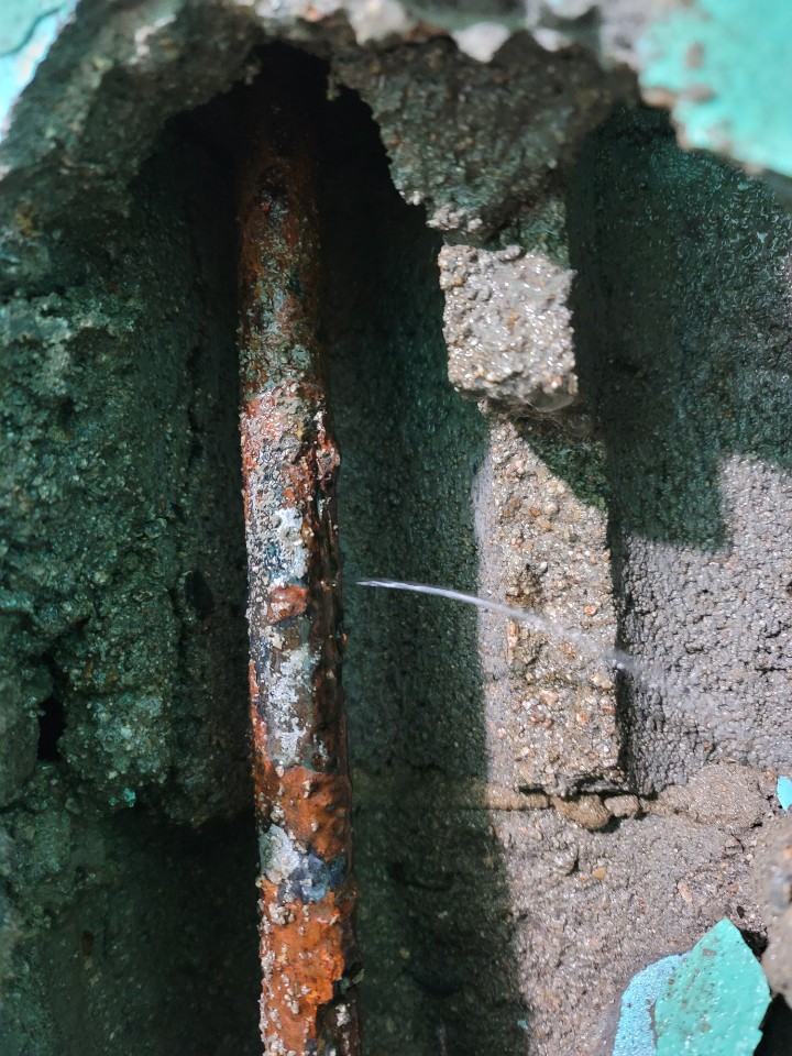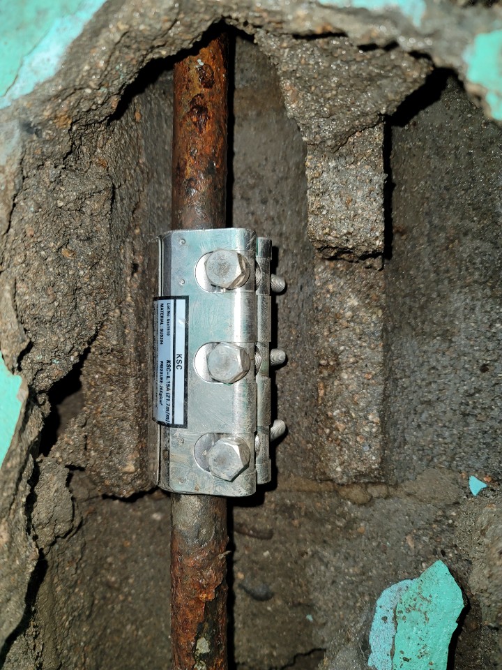 노후된 철 파이프가 나타났고 누수가 일어나는 상황이었습니다.