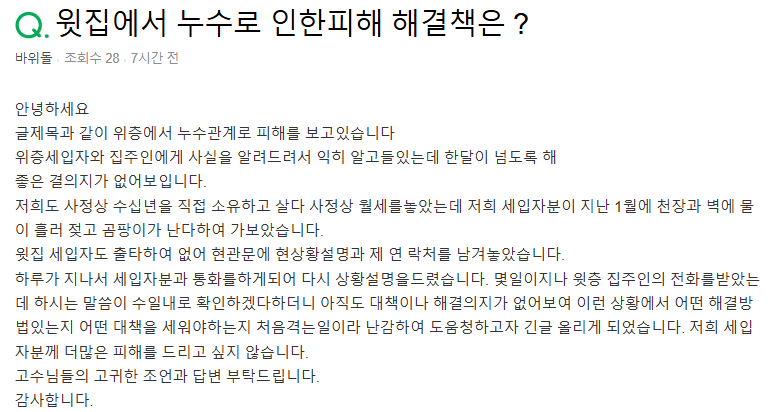 #### 저는 전문 법조인이 아니므로 현 포스팅은 참조용으로만 사용하시기 바랍니다. #### 우리 집이 윗집의 누수로 인한 피해를 본 상황인데 피해에 대해 전혀 보상을 못 받거나 혹은 보상을 받긴